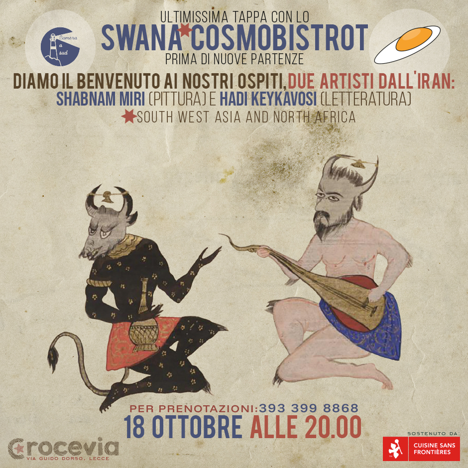1 year, 12 dinners from 12 ethnic contexts of migrants living in Lecce, in parallel music and visual arts from the same cultural space, to bring us closer, to break down prejudices, to increase probabilities for friendships and community projects. THANK YOU Phyllis Bussinger, thank you Martin Roth, thank you all people from Cuisine sans frontières and all those who support this and all those who support this non-profit association!