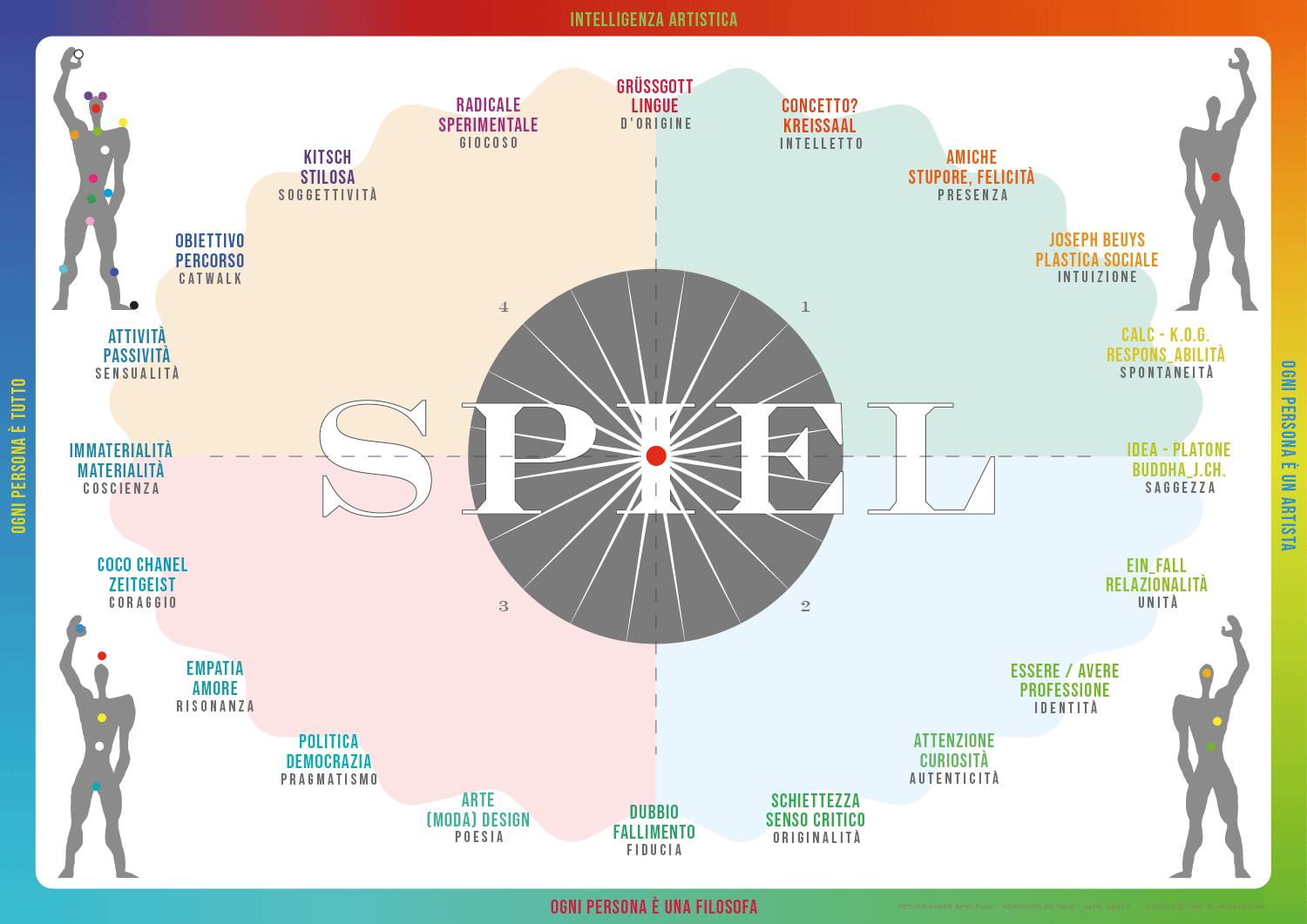 i bring this graphic on the left with me as my work plan. In the middle of everything is SPIEL (game), the heart of all intelligence, surrounded clockwise by the four quadrants/weeks, whose keywords we want to discuss and reflect on at the beginning of each week. after this beautiful and exhausting experience i decide that i and want to present this Ur-Ki format to doublcheck in Vorarlberg soon. There, artists can present workshop formats, which are then reviewed and posted online, where teachers and schools can book them.